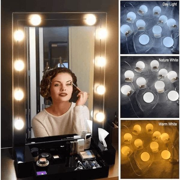10 Ampoules LED pour Miroir de Maquillage – 5 Modes de Couleur & Intensité Réglable – Installation Facile via USB