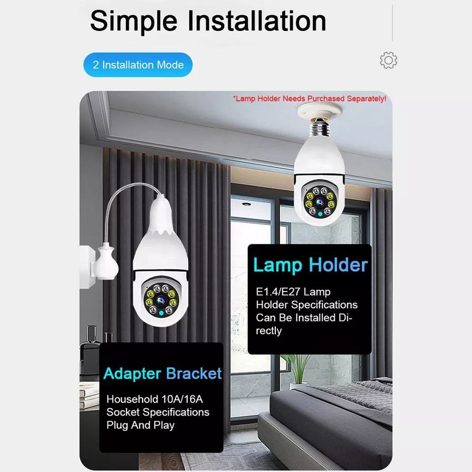 Caméras de Surveillance Wifi ampoule caméra Vision nocturne polychrome panoramique haute définition Smart Home Protection moniteur