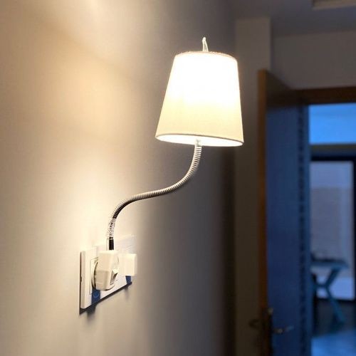 Lampe de chevet enfichable, branchée assez fermement, ne tombe pas facilement, le grand interrupteur de panneau est plus pratique pour allumer la lumière à la tombée de la nuit.