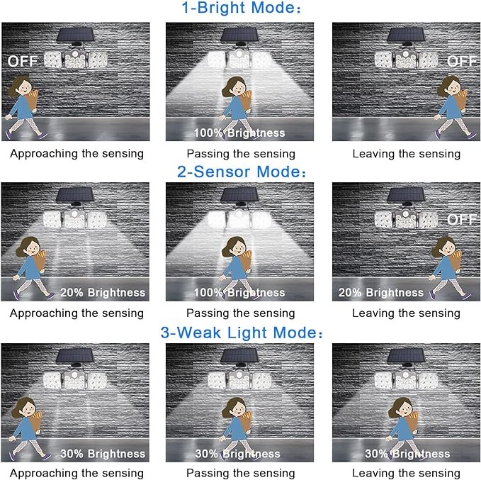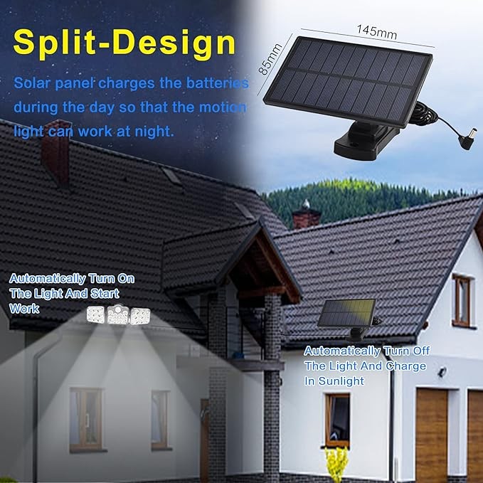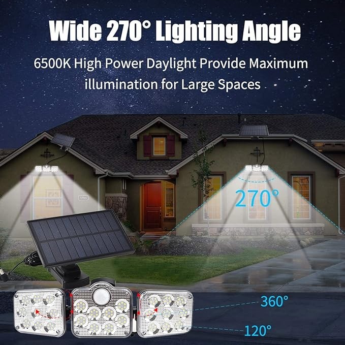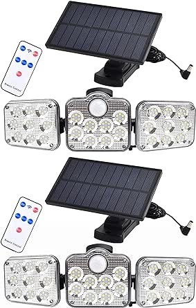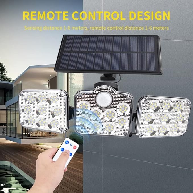 Applique murale solaire à trois LED avec détecteur de mouvement et télécommande, imperméable conforme à la norme IP65, éclairage d'extérieur, idéal pour un jardin, un Garage, une cour ou la rue