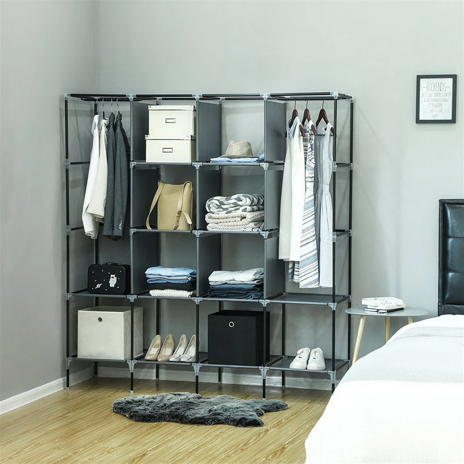 3. Placard de rangement spacieux: la tige de suspension mobile pour vêtements et les 12 étagères de rangement vous offrent suffisamment d'espace pour vos tenues plus longues et vos vêtements pliés.