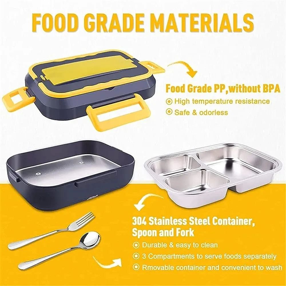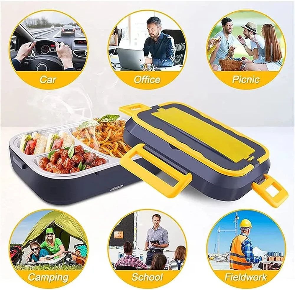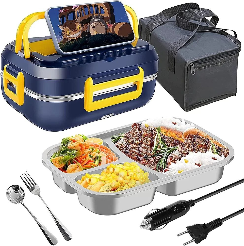 Boîte à déjeuner chauffante électrique 1.5 l, conteneur en acier inoxydable, boîte à déjeuner électrique Plug and Play pour voyage voiture
