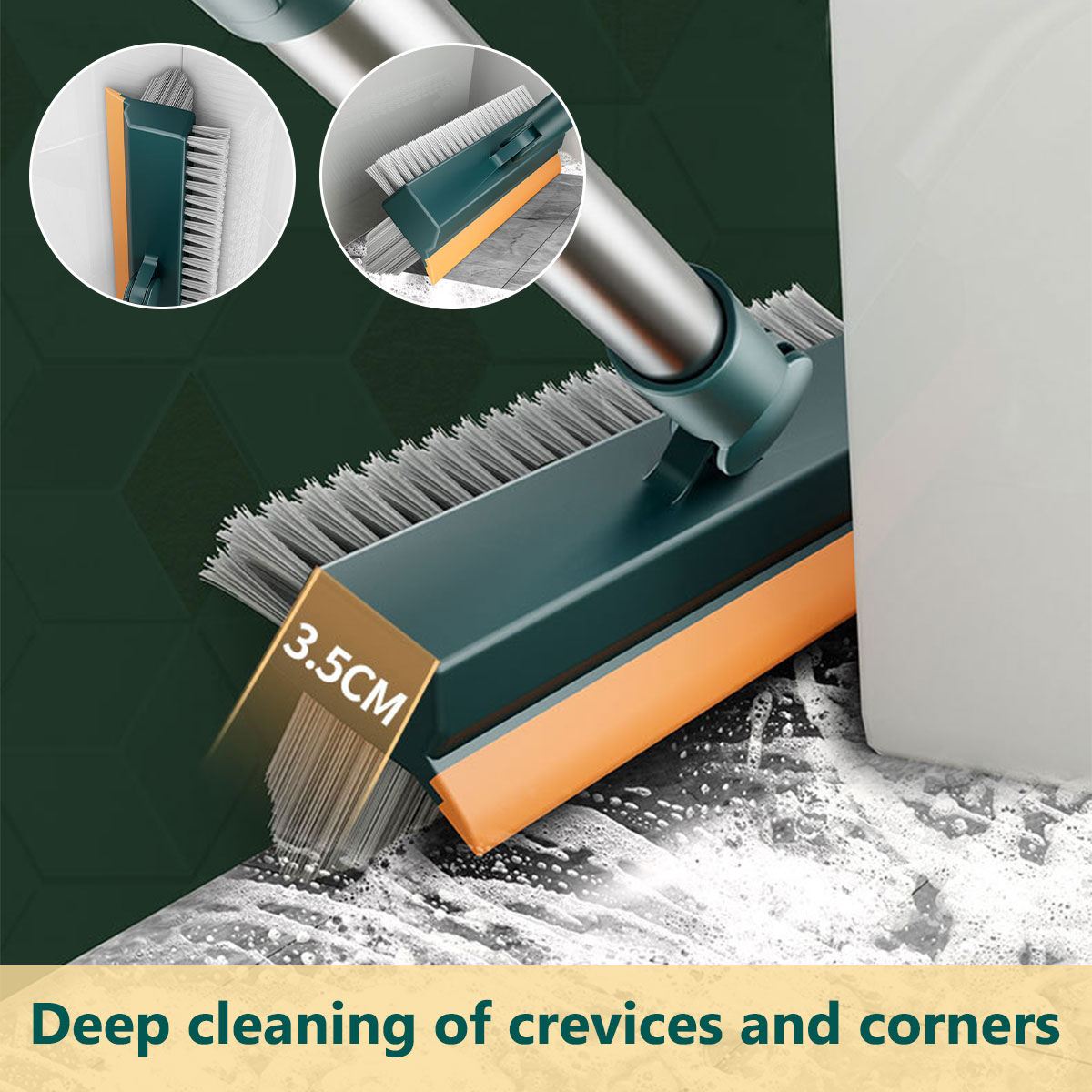 [Conception de rotation à 45 °] Notre brosse rotative pour nettoyer les crevasses des sols de la cuisine est conçue avec un angle d'économie d'effort de 45 degrés entre la tête de la brosse à coulis et la poignée pour atteindre les coins, les rainures et les lignes de coulis.
