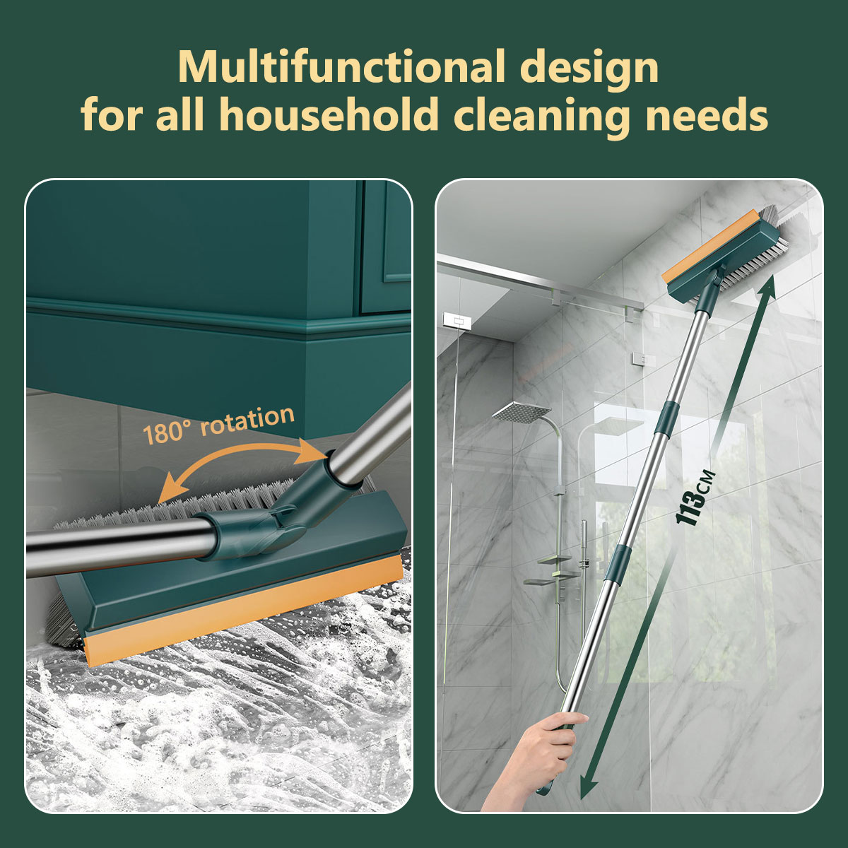 [Facile à utiliser et à nettoyer] Nos brosses de nettoyage à long manche peuvent utiliser l'arrière de la barre de grattoir pour frotter les eaux usées, essuyer, et frottez les sols après le balayage avec une seule lingette pour nettoyer et sécher! Faites votre nettoyage rapidement.