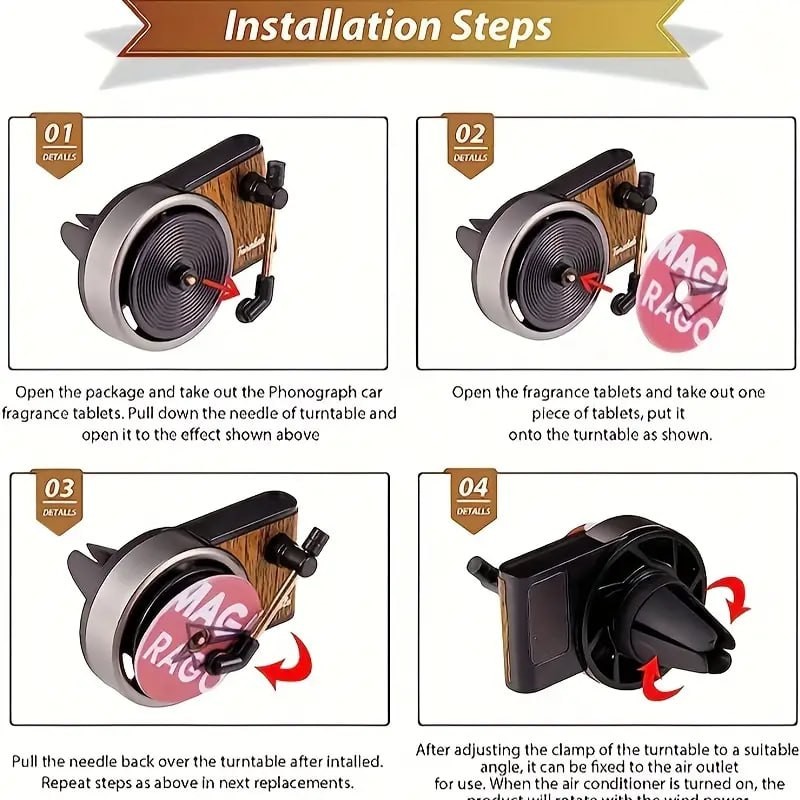 Diffuseur d'odeurs pour voiture Clip de parfum pour voiture Spin Phonograph Air Vent Outlet Aromatherapy Clip Smell Diffuser