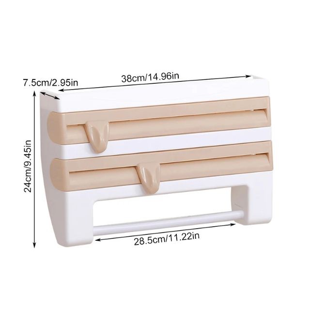 Ce produit est un triple distributeur de papier polyvalent conçu pour simplifier et organiser l'emballage et le stockage dans la cuisine. Ce distributeur est doté d'une fonction 4-en-1, ce qui signifie qu'il peut contenir et organiser quatre types de matériaux différents :