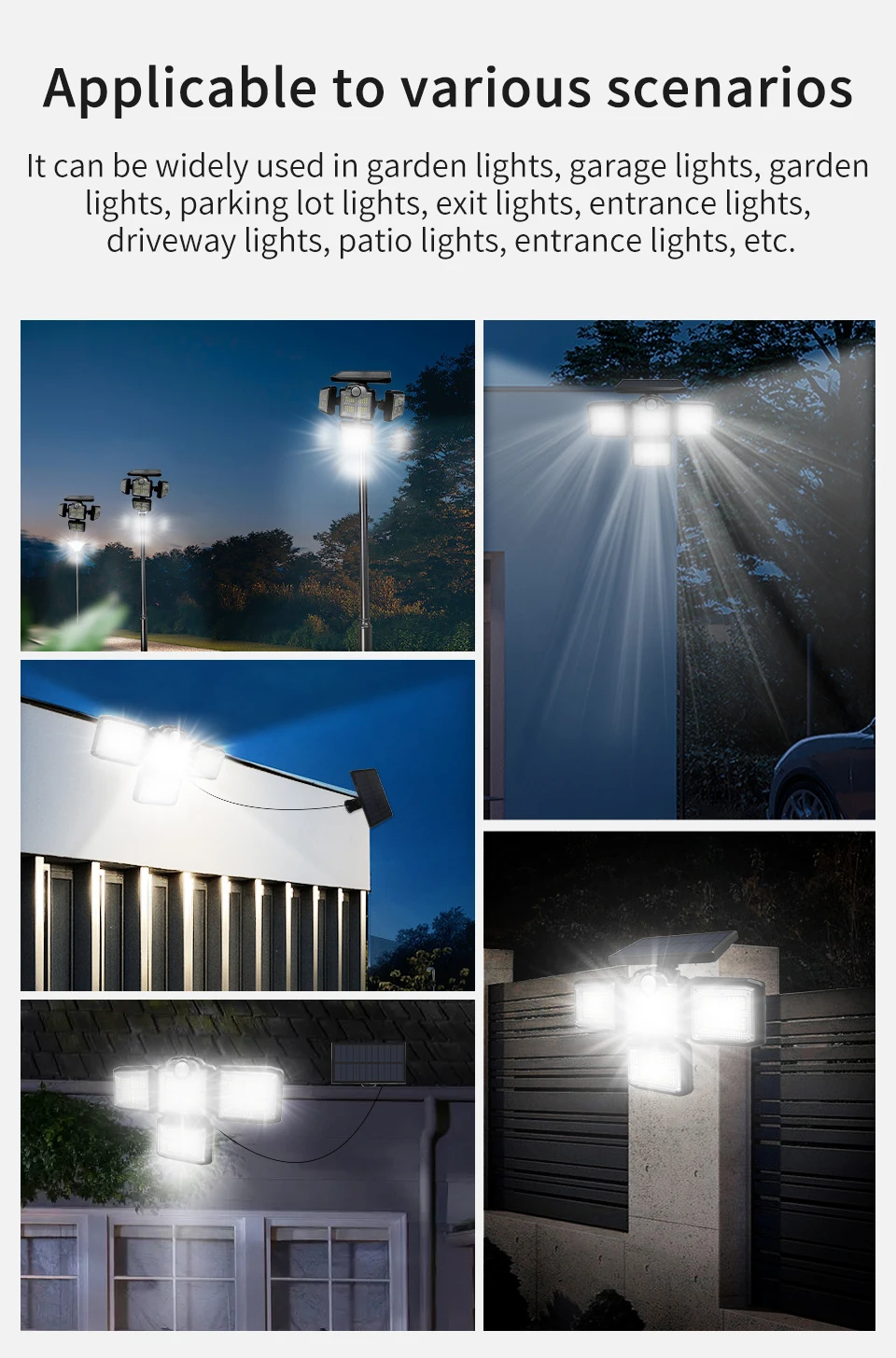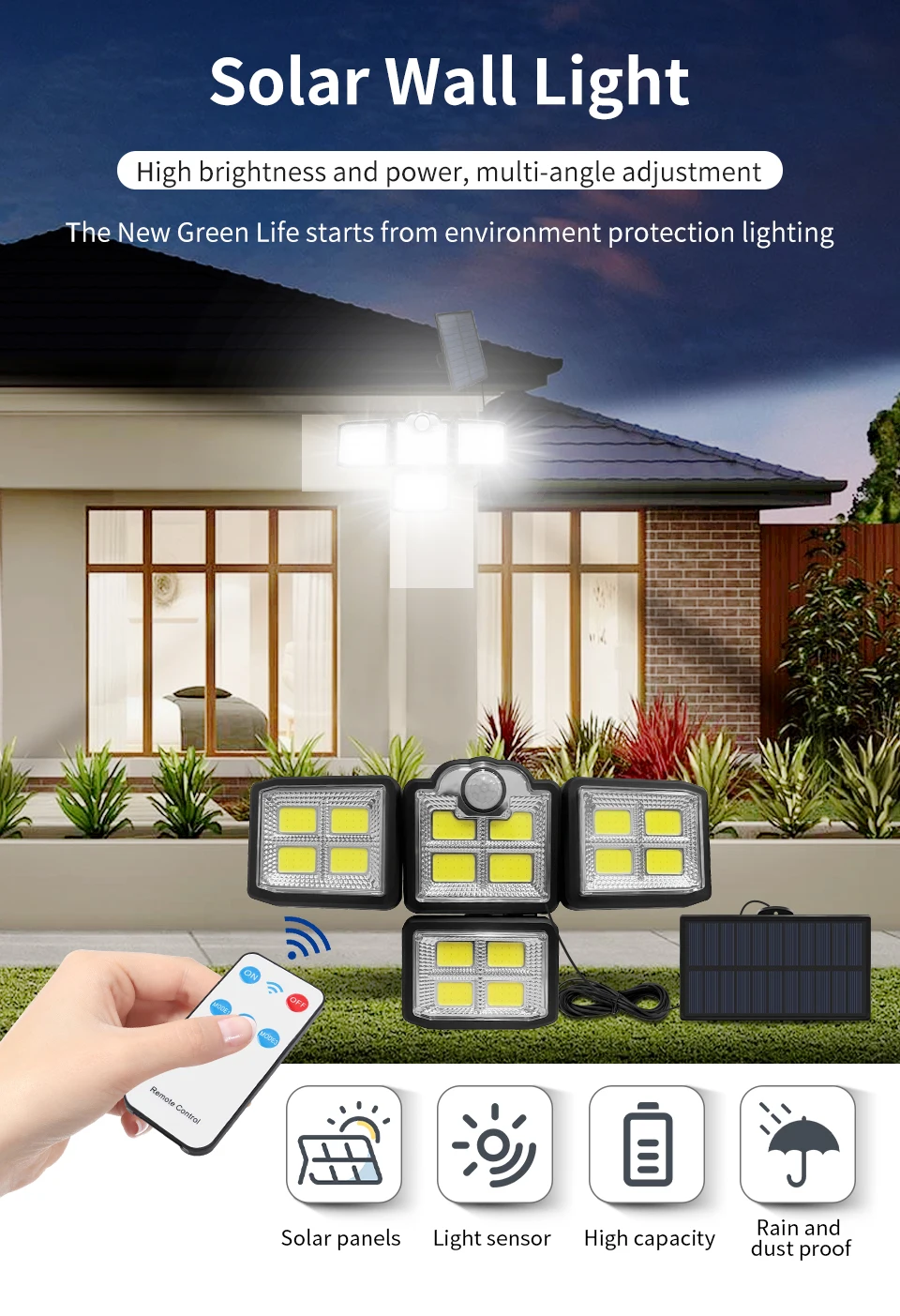Éclairage mural solaire étanche avec 4 capteurs de mouvement,parfait pour le jardin