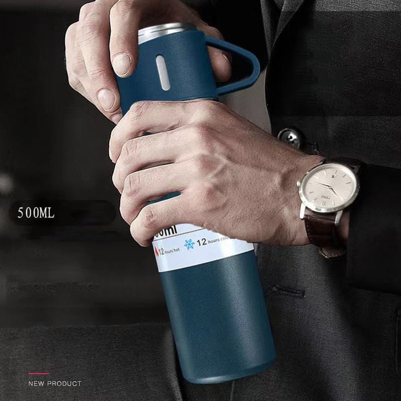 Ensemble de tasses thermos en acier inoxydable pour hommes et femmes, gobelet à trois couvercles, tasse à eau spéciale, cadeau d'affaires, voyage, 304
