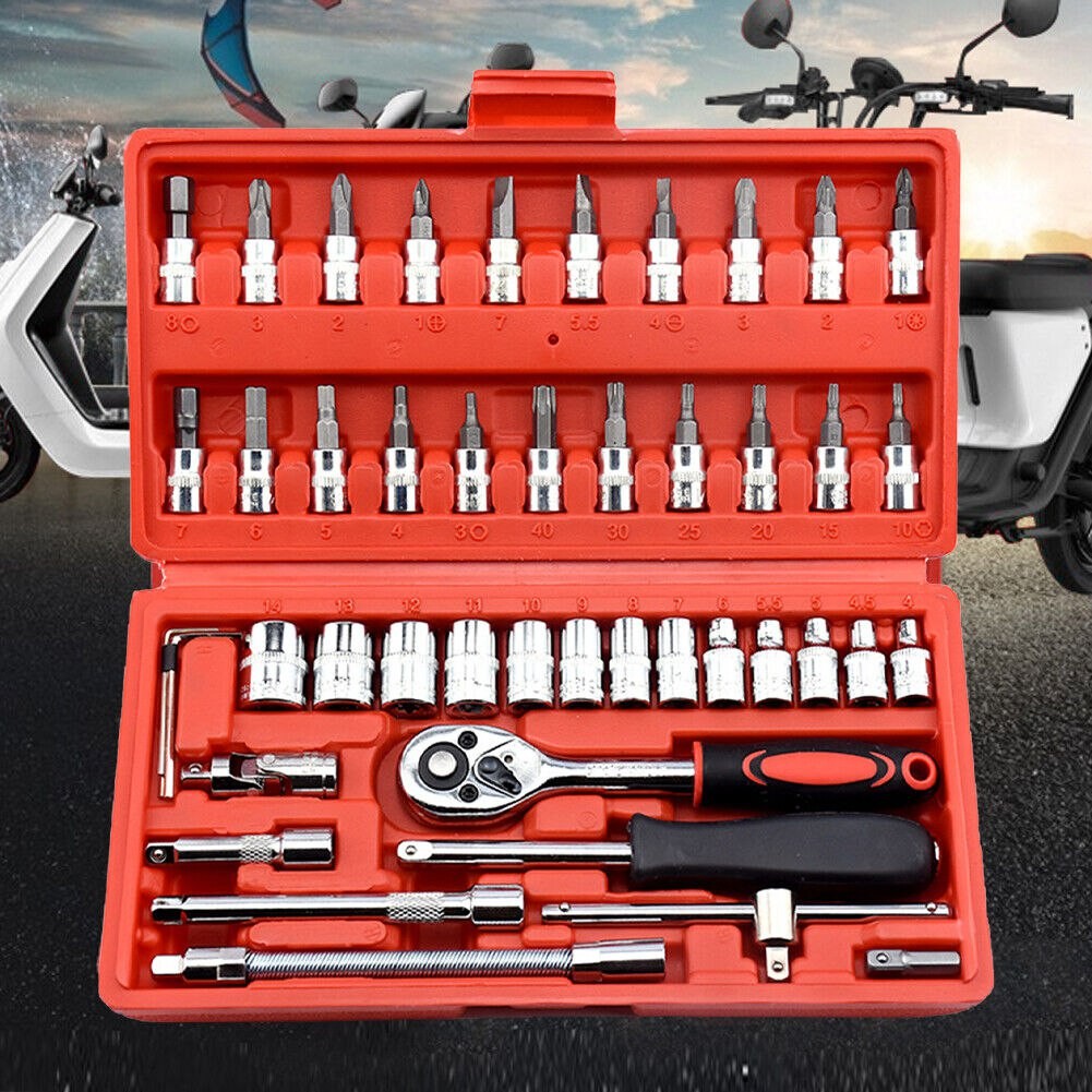 Ensemble de clé à outils en acier, 46 pièces, kit de clé à combinaison de manchon automatique, douille d'outils de réparation automobile