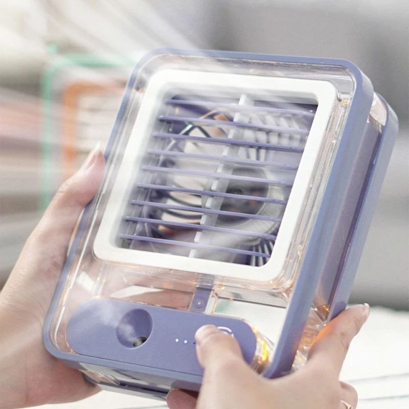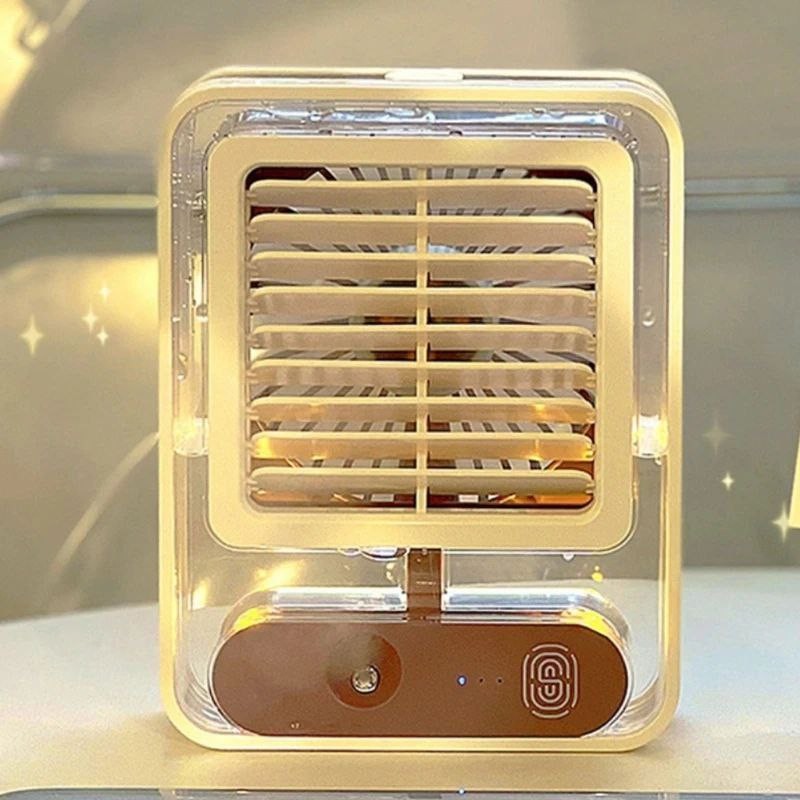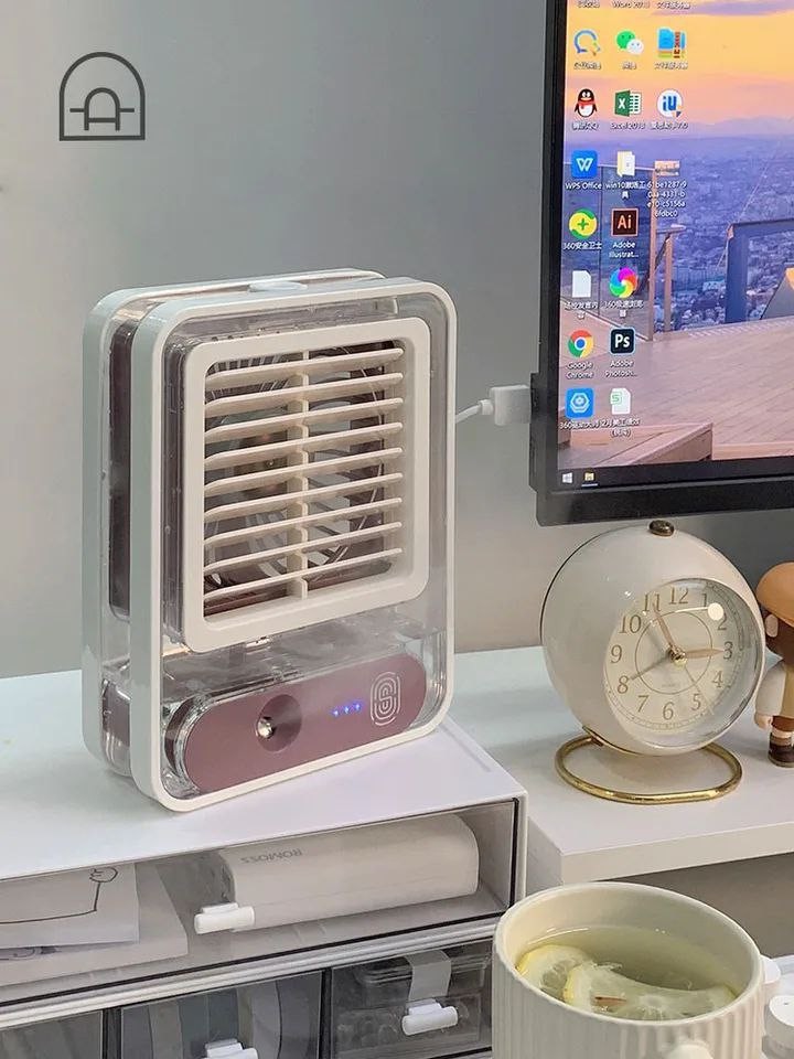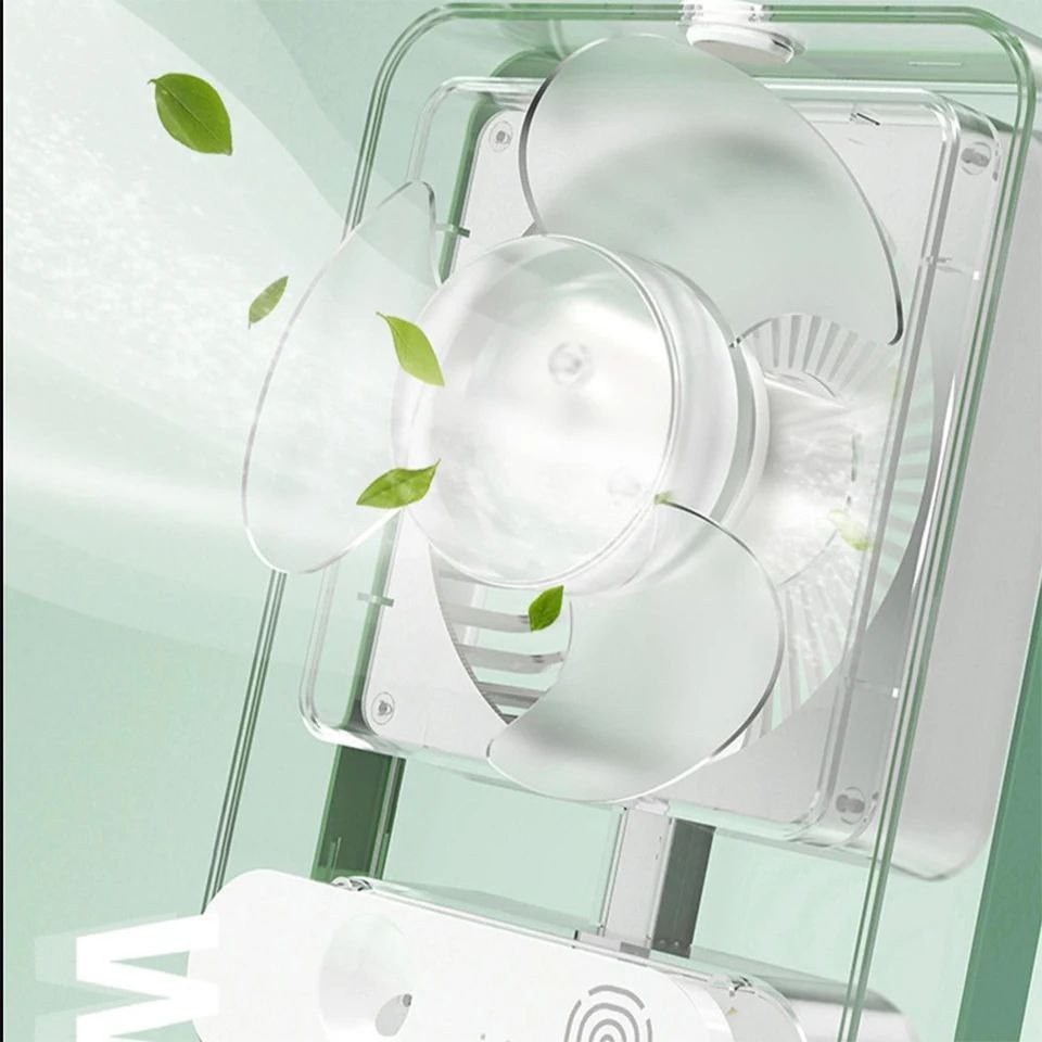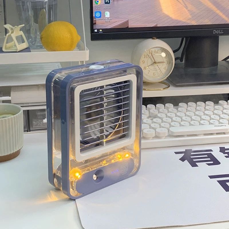 Fan Miniature avec Fonction Brumisateur, Lumière LED et Rechargeable - Portable, Ventilateur 4.5W, USB, veilleuse colorée, petit format