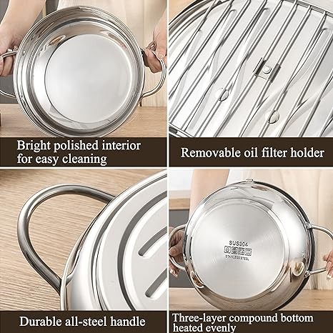Friteuse en acier inoxydable avec contrôle de la température, marmite à frire, outils de cuisson jetables, thermomètre, tempura, 304