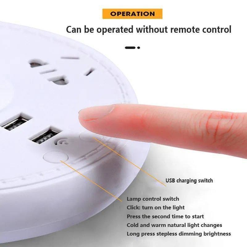 Lampe de table multifonctionnelle avec télécommande, 4 prises , 2 prises USB et support de téléphone portable