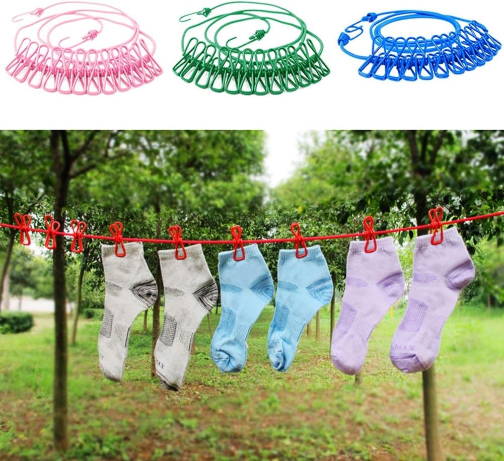 Ligne de Lavage artificiel astique avec 12 Clips, Portable, Rétractable, pour Voyage, pour Chaussettes, Sous-Vêtements, Cintre
