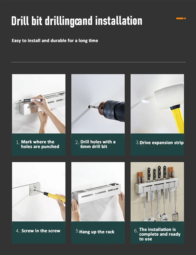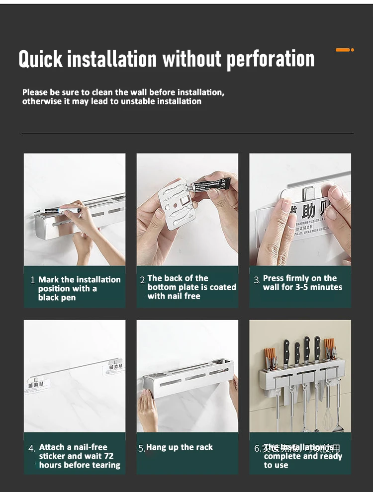 • Facile à nettoyer : peut être démonté rapidement, le support d'ustensiles de cuisine peut être retiré librement, les crochets et l'égouttoir à vaisselle sont accessibles ce qui rend le nettoyage sans effort. Il résiste également aux taches d'huile.