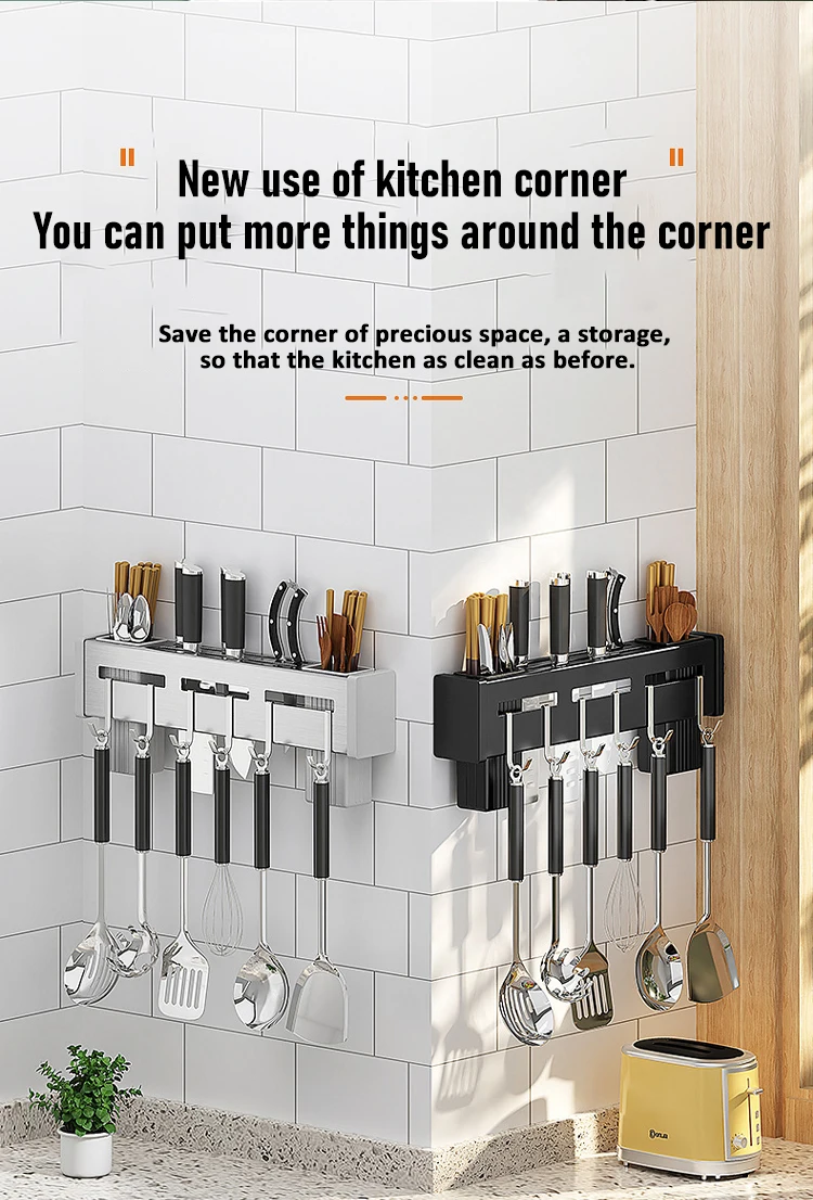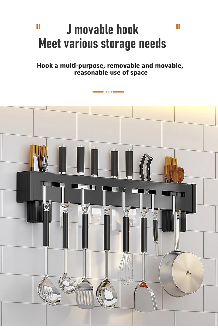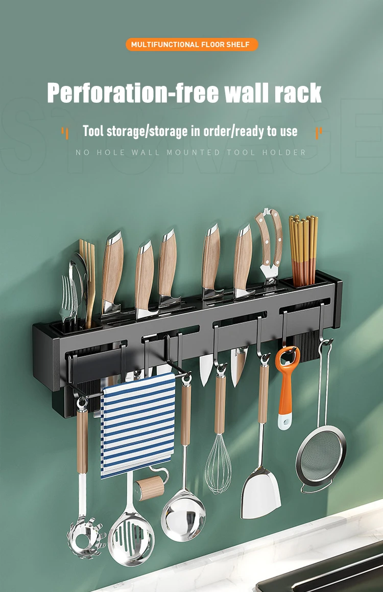 Étagère de rangement murale pour la cuisine, porte-couteau, porte-baguettes, porte-cuillère T1, outils de poinçonnage gratuits, gadgets de cuisine, accessoires
