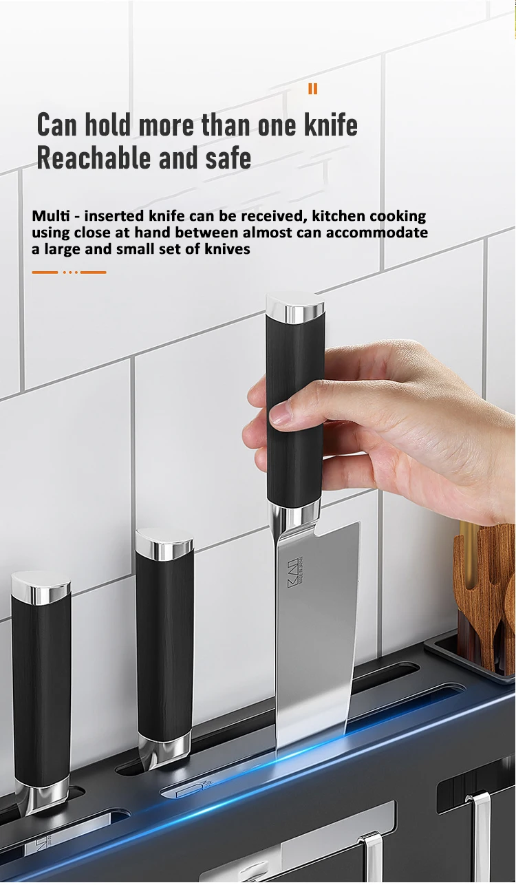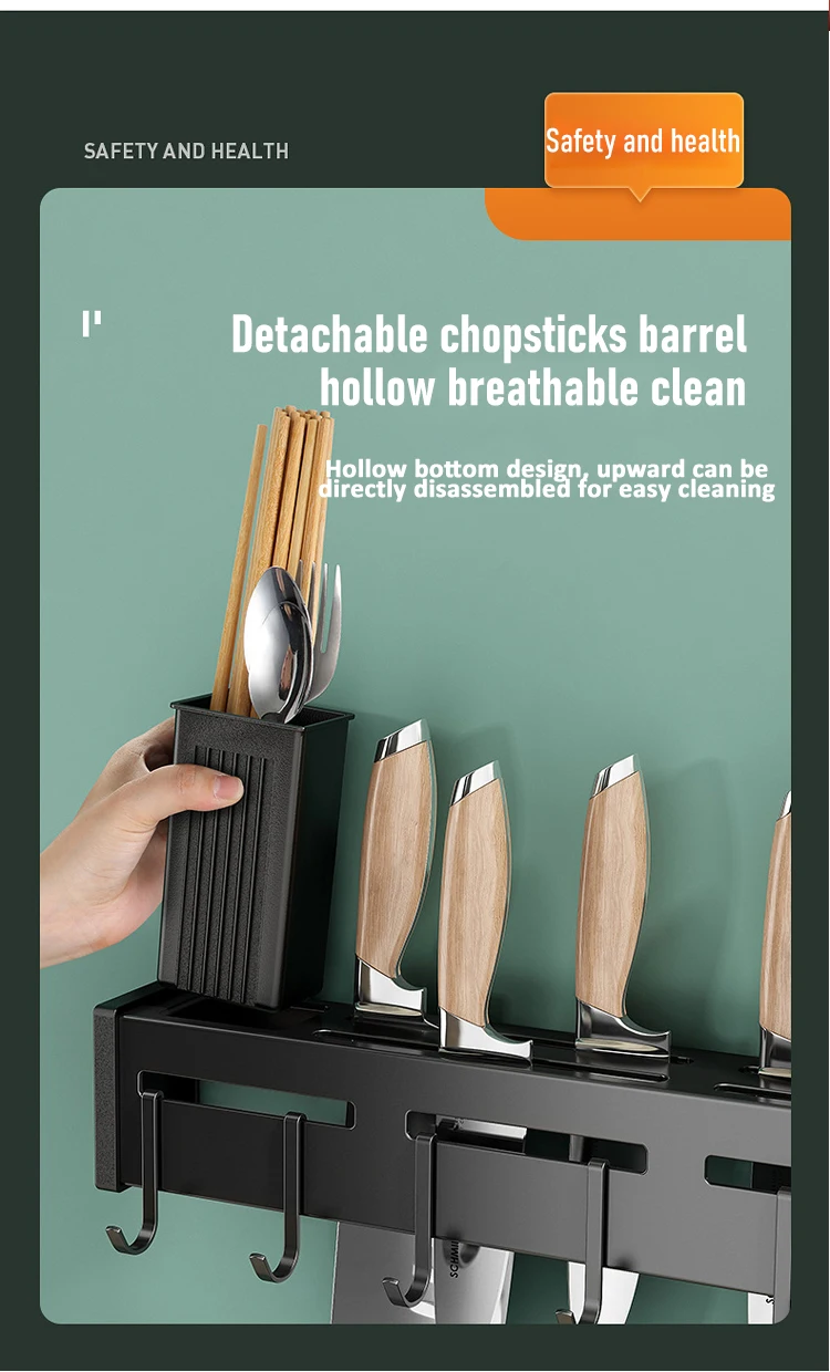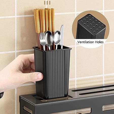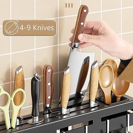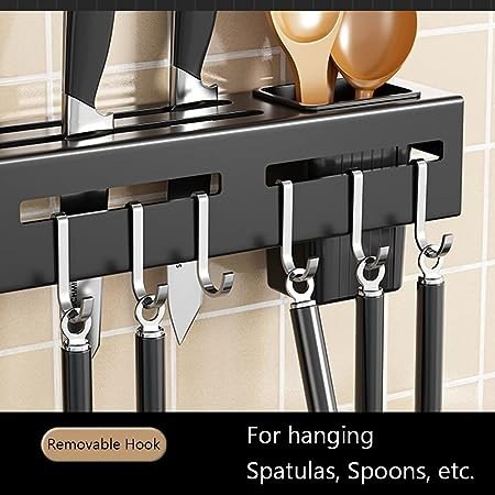 • Multifonction : avec 8 crochets, 4 fentes pour couteaux, 2 tasses à ustensiles, ce support mural peut non seulement stocker les baguettes, cuillères, fourchettes, mais peut également accrocher les casseroles et poêles, faire comme porte-couteaux et porte-nappe, barre de suspension supplémentaire pour accrocher des chiffons. Tout le monde vous aide à nettoyer tous les ustensiles de cuisine, économiser de l'espace et vous pouvez juste chercher ce dont vous avez besoin de l'étagère propre.