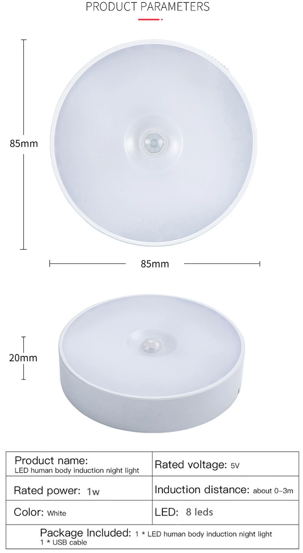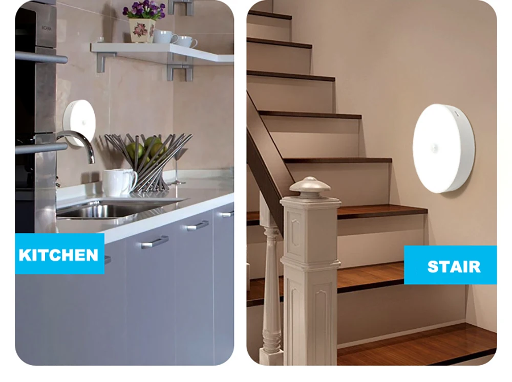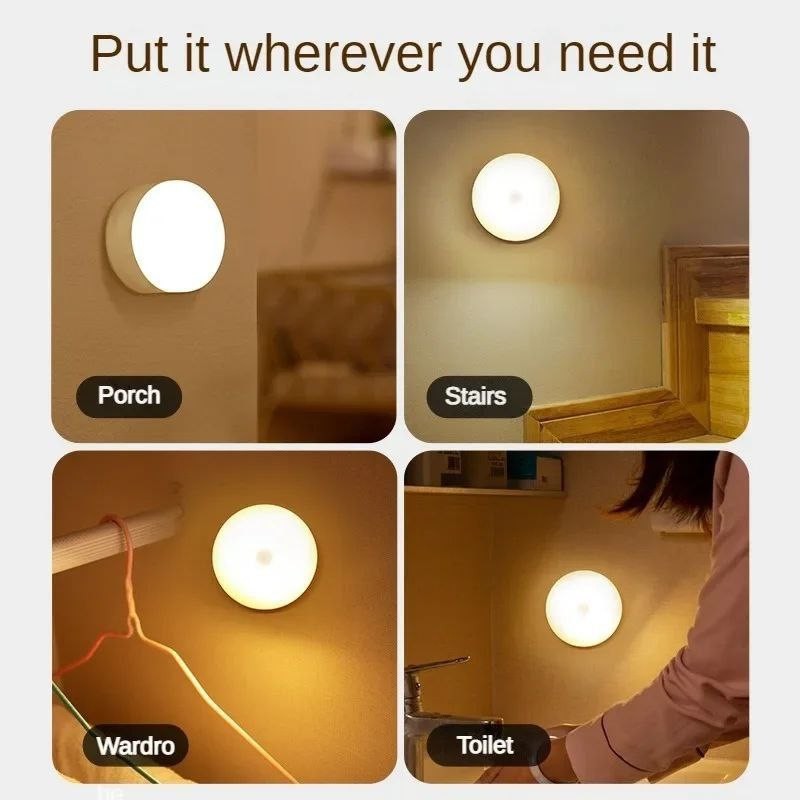 Mini lampe LED ronde avec capteur de mouvement, luminaire décoratif d'intérieur, idéal pour une chambre à coucher, une cuisine ou une chambre d'enfant