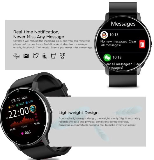 Montre connectée de sport pour hommes et femmes, moniteur de fréquence cardiaque, fitness, musique, montre pour téléphone Android et iOS