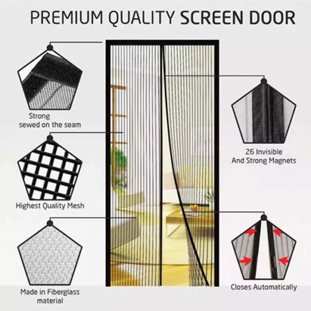 Mosquitera magnética sin perforaciones, cortina de puerta de malla antiinsectos, cierre automático, uso para puerta corredera del hogar, 5 tamaños