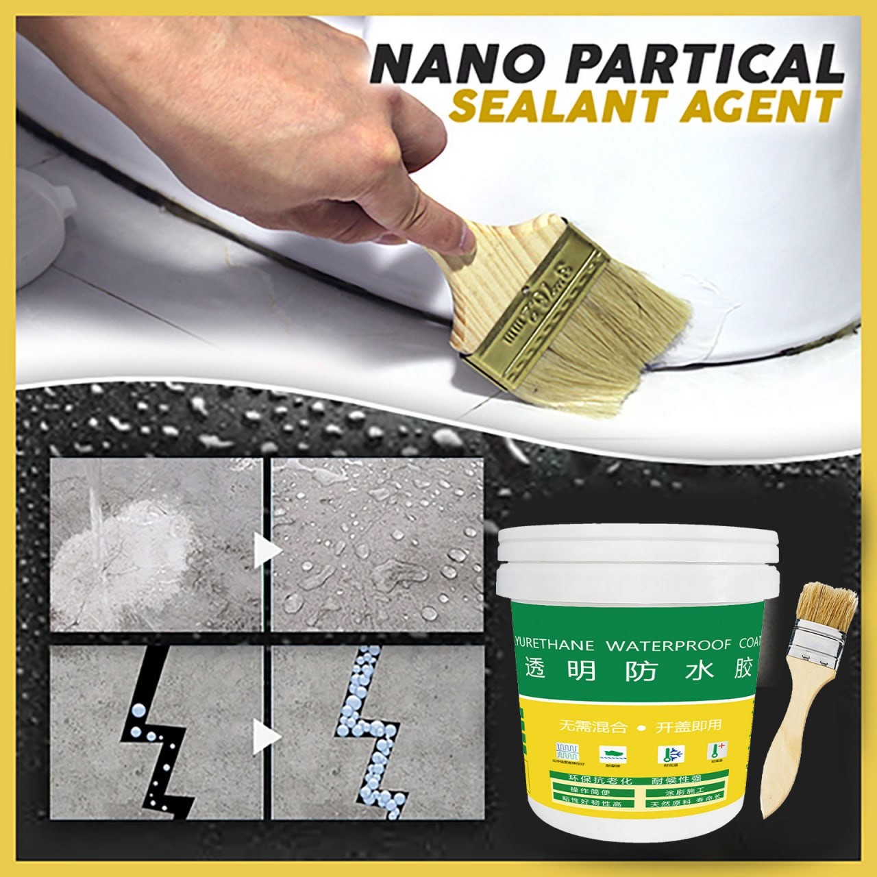 Pâte de liaison Invisible à base d'eau, revêtement de mur extérieur imperméable, mastic imperméable avec jeu de brosses de 300g