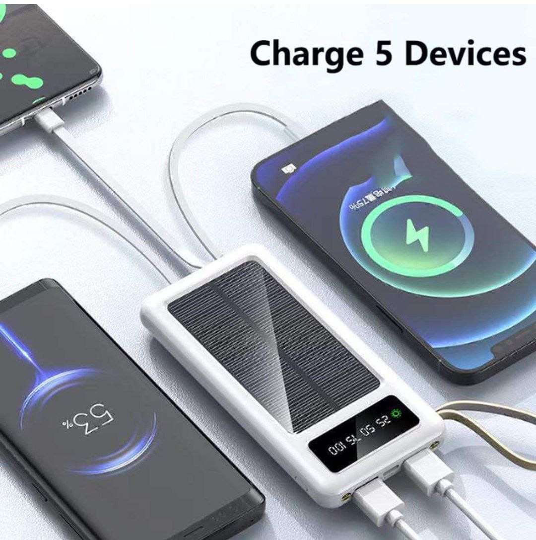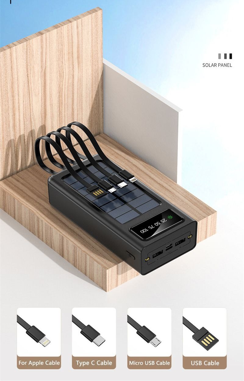 Power Bank d'alimentation solaire portable avec câble intégré, chargeur de batterie externe, Xiaomi Mi, iPhone 14, Samsung, Huawei, 30000mAh