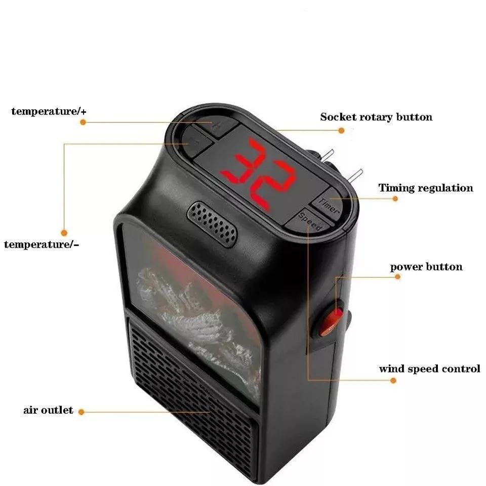 Radiateur de flamme électrique 900W, prise murale pratique, prise de courant numérique, ventilateur chauffant, souffleur d'air chaud, radiateur électrique pour la maison en hiver