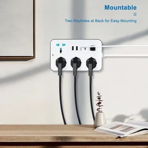 Rallonge Multiprise Type-C 8-en-1 – 4 Prises de Courant + HUB USB 3 Ports + 1 Port Type-C PD